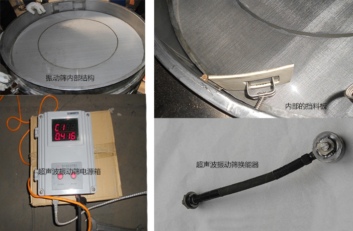 超聲波振動篩(超聲波旋振篩)主要由底座、振動電機、篩箱、篩網、超聲波系統等組成,其中超聲波系統為超聲波振動篩主要配件之一。