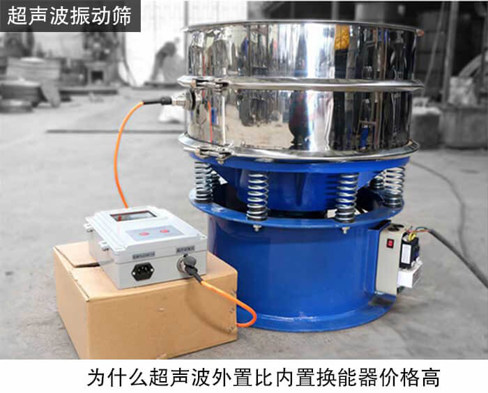 超聲波振動篩是將220V,50Hz電能轉化為38Hz的高頻電能,輸入超聲波換能器,將其變成38Hz的機械振動,從而達到高效篩分和清網目的的。其中的關鍵就是換能器,通常情況下它的安裝可分為兩種:內置和外置。而外置價格比內置高很多,為什么會產生這種不同呢?接下來小編給大家介紹一下。
