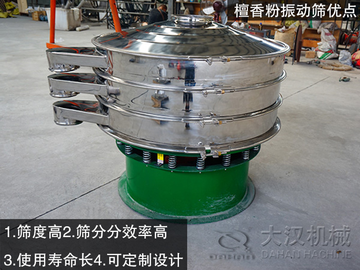 檀香粉是能夠清心安神,消除疲勞的作用,在使用前,要把它加工成適合使用的顆粒,這樣才可以讓其物盡其用那么作為一種粉末狀物料,在加工時如何進(jìn)行篩分成一定的規(guī)格呢?應(yīng)該選用什么振動篩呢?