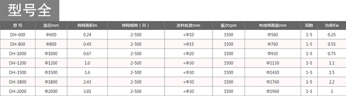 奶粉篩用來工作時,每個客戶都是有自己的需求量的,都不相同,但是大漢機械的不銹鋼三次元振動篩型號眾多,能夠滿足大多數用戶的需要。具體的產品參數如上圖參數表所示。
