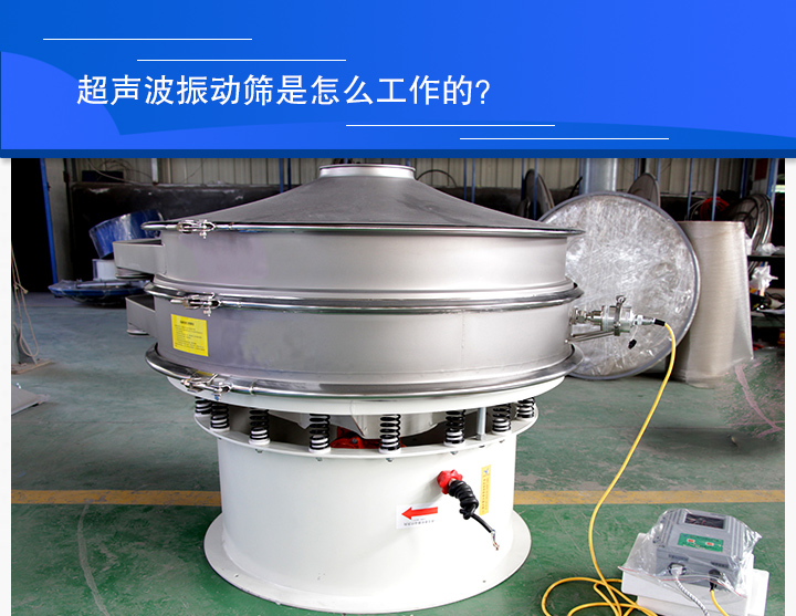 超聲波振動篩是在傳統振動篩的基礎山增加了一個低振幅,高頻率的振動波。它可以將220V,58Hz電能變為38KHz的高頻電能,輸入超聲波換能器,將其變成38KHz機械振動,從而達到高效十篩分和清網的目的,使超微細粉的篩分成為易事。