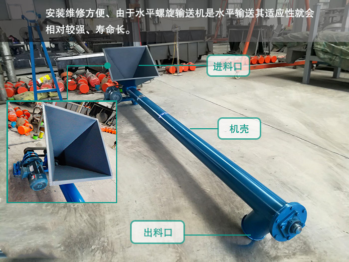 水平螺旋輸送機(jī)的整機(jī)體積小主要是因?yàn)樗铰菪斔蜋C(jī)的,結(jié)構(gòu)相對(duì)比較緊湊且合理同時(shí)還采用了高功率的電機(jī)助力其轉(zhuǎn)速就會(huì)非常的高、在高轉(zhuǎn)速的情況下就能確保水平螺旋輸送機(jī)快速且均勻輸送。