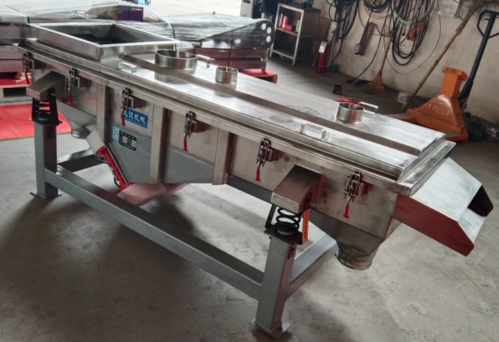 這是用來篩精細(xì)物料的主要設(shè)備,靠立式的振動電機(jī)帶動,電機(jī)上下兩端的偏心塊會產(chǎn)生一種復(fù)合力量,讓篩網(wǎng)同時(shí)做水平、垂直和傾斜三個(gè)方向的運(yùn)動。