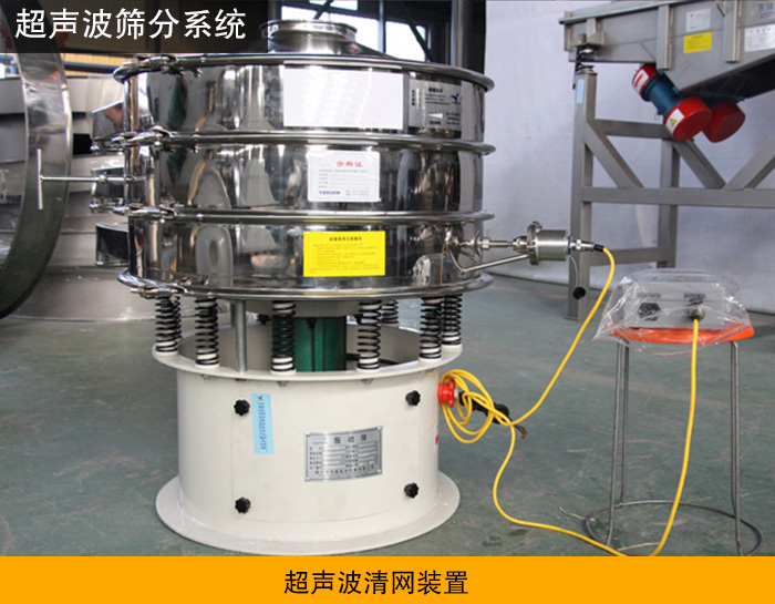 該裝置是利用超聲振動波對篩網(wǎng)進行清網(wǎng)工作。其主要組成部件有超聲波電源、換能器與超聲波網(wǎng)架組成。其原理是通過超聲波電源將常規(guī)用電轉(zhuǎn)換為18KHZ高頻電能,通過換能器作用在網(wǎng)架上,從而解決高精細物料的清網(wǎng)與高效篩分工作。該裝置多用于振動篩分機中,根據(jù)需要也可改裝后用于直線篩或搖擺篩中。